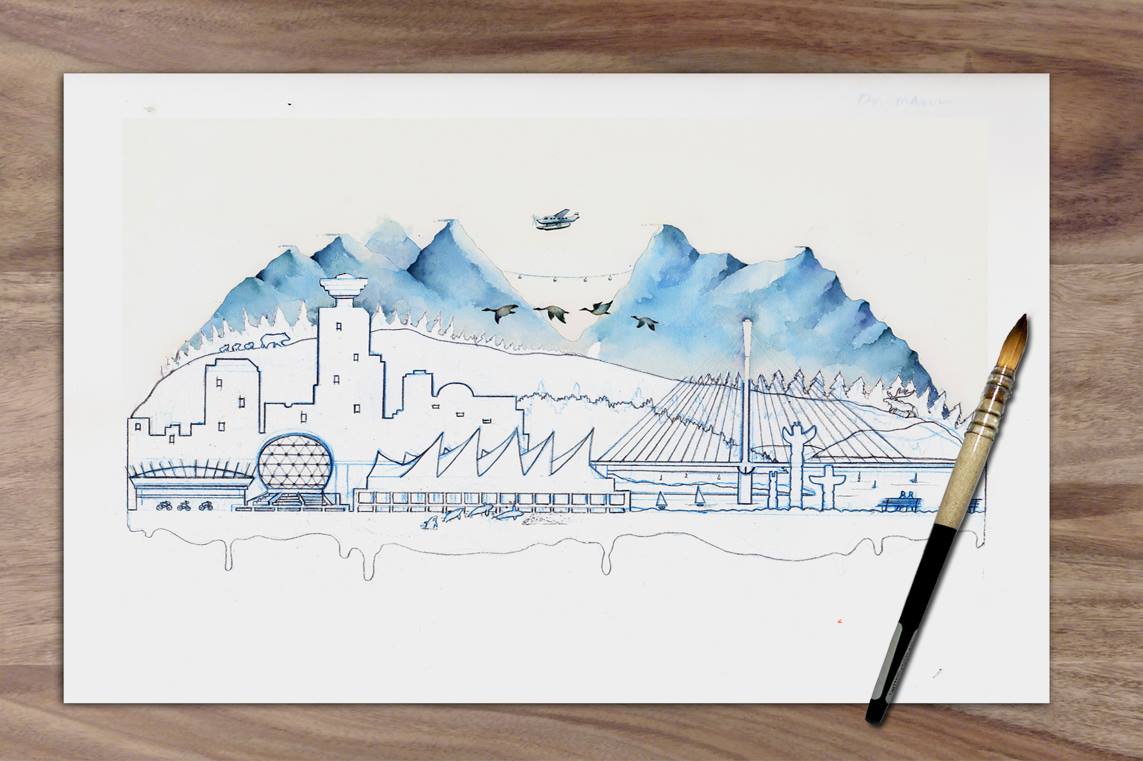 medium: Acrylic paint on Canvas. The theme was international skylines: Vancouver,